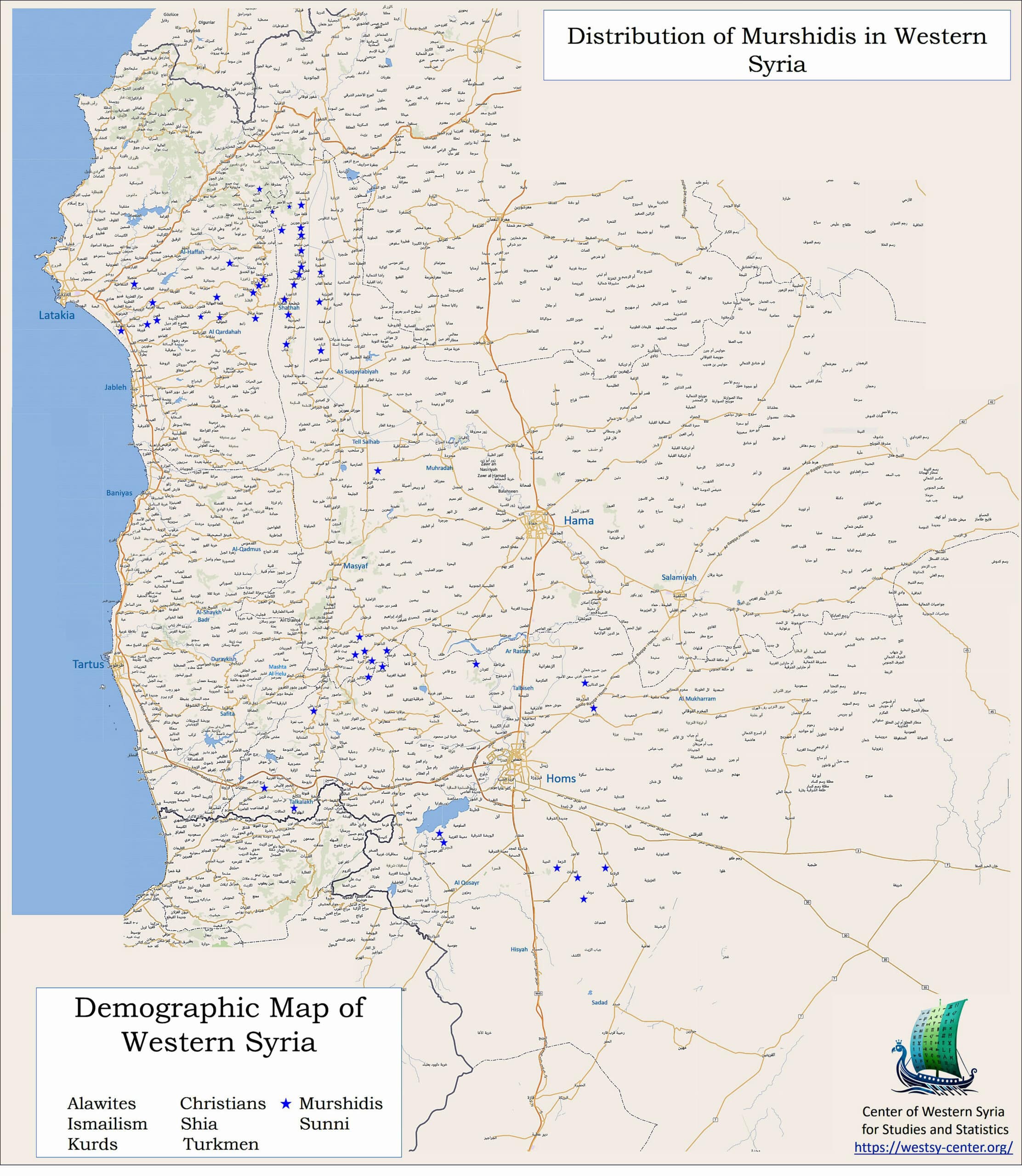ينتشر المرشديون في مناطق تواجد العلويين بشكل عام، ويتركزون في المناطق التالية: